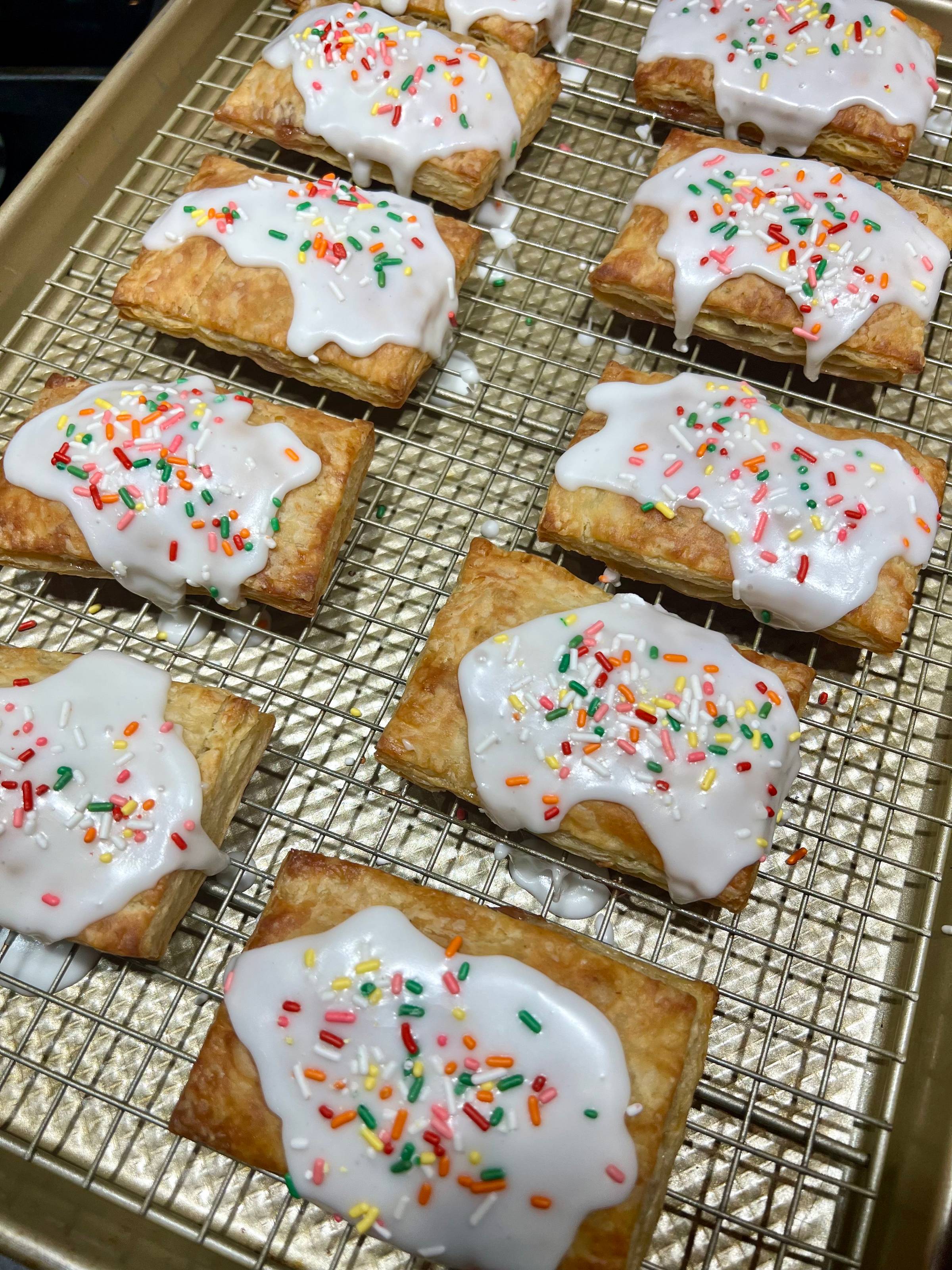 The key is keeping the dough cold; the cold butter makes that perfect flaky pastry. Once you get the hang of assembling them, you can batch freeze and bake whenever. The kids will eat them warm as soon as the icing goes on… and yes, sprinkles are basically mandatory.