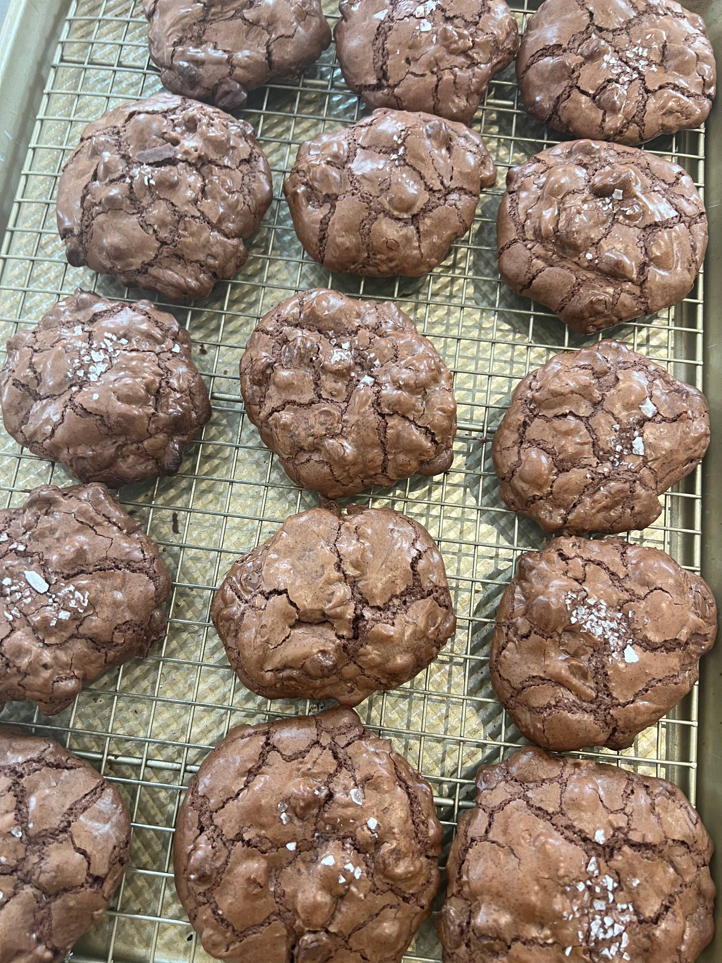 They’re the Sourdough Mudslide Cookies from my book, made with whole grain rye and dark chocolate. Rich, slightly chewy, deeply chocolatey, but balanced. The rye gives them structure and a subtle earthiness that keeps them from being overly sweet.